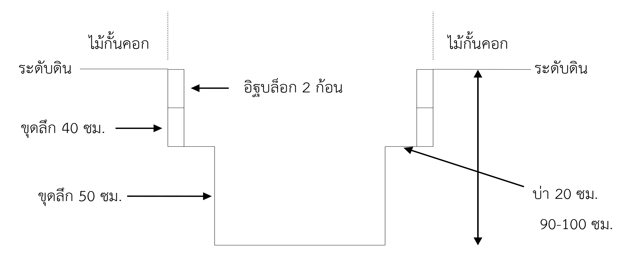 5.  ขุดหลุมจากบ่าลงไปลึก 50 เซนติเมตร