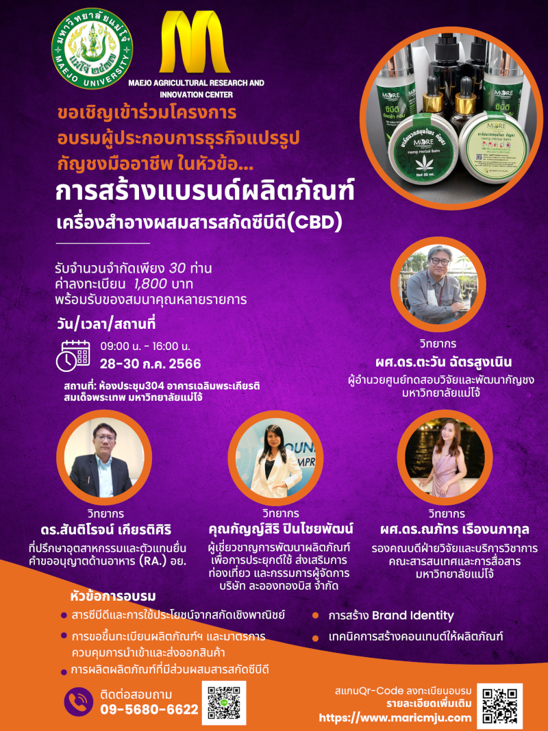 บรรยาย เรื่อง การผลิตน้ำมันนวดผสมน้ำมันกัญชง massage oil therapy สูตรคลายเส้น |